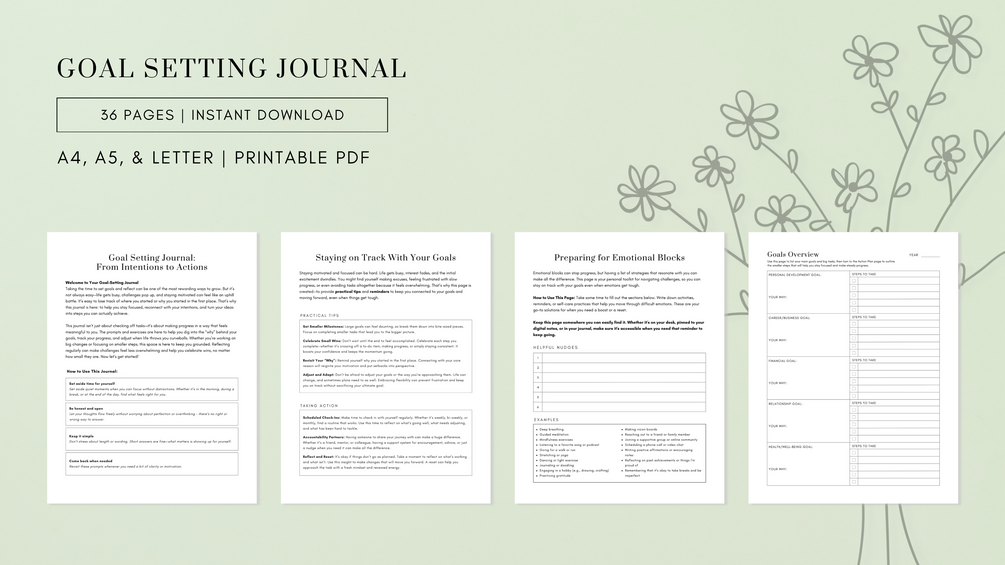 Sticking to goals isn’t always easy. Life gets busy, and it’s easy to lose focus. That’s why this 36 page printable Goal Setting Journal is designed to give you a clear, practical way to stay focused, organized, and motivated—so you can start the new year with clarity and confidence.